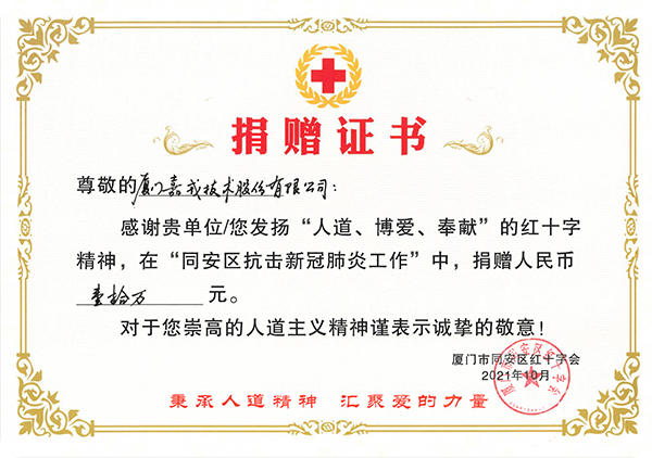 嘉戎技術(shù)也積極投身公益事業(yè) 、回饋社會(huì),為社會(huì)和諧發(fā)展貢獻(xiàn)一份力量